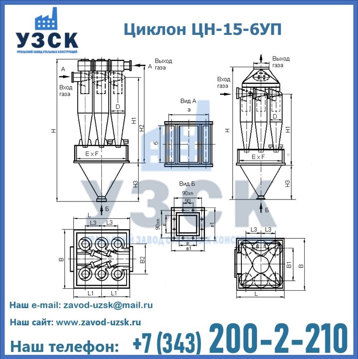 | ЦИКЛОН ЦН-15-500х6УП | 1600 | 1600 | 928 | 340 | 940 | 580 | 200 | 310 | 1920 |