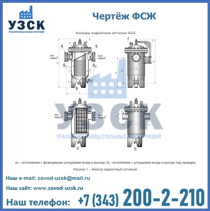 Очистку перекачиваемых жидкостей на предприятиях нефтяной, пищевой, горнорудной, фармацевтической и других отраслей промышленности эффективно выполнять с помощью жидкостного сетчатого фильтра — емкостное оборудование цилиндрической формы со съемной крышкой и элементом фильтрации внутри. Оснащенные им всасывающие линии насосных станций и установок защищены от проникновения твердых частиц в функциональные узлы гидравлической системы. Оборудование служит для перекачивания токсичных, агрессивных и иных эмульсий, суспензий, жидкостей. Купить фильтр сетчатый жидкостный ФСЖ в Волгограде с гарантией производителя предлагает «Уральский завод стальных конструкций». Мы выполняем проектирование и изготовление ФСЖ по индивидуальным требованиям (климатическая зона, транспортируемая жидкость).