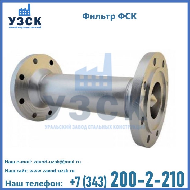 Уральский Завод Стальных Конструкций занимается производством фильтров ФСК различных конфигураций, что позволяет применять их в различных средах. Фильтры имеют разные диаметры, которые соответствуют сечениям всасывающих трубопроводов, на которых будут монтироваться. Конструкция выполняется из высококачественной стали, на фильтры могут быть установлены сетки с различными параметрами ячеек, чтобы обеспечить максимально эффективную очистку жидкой и газообразной среды от твердых частиц.