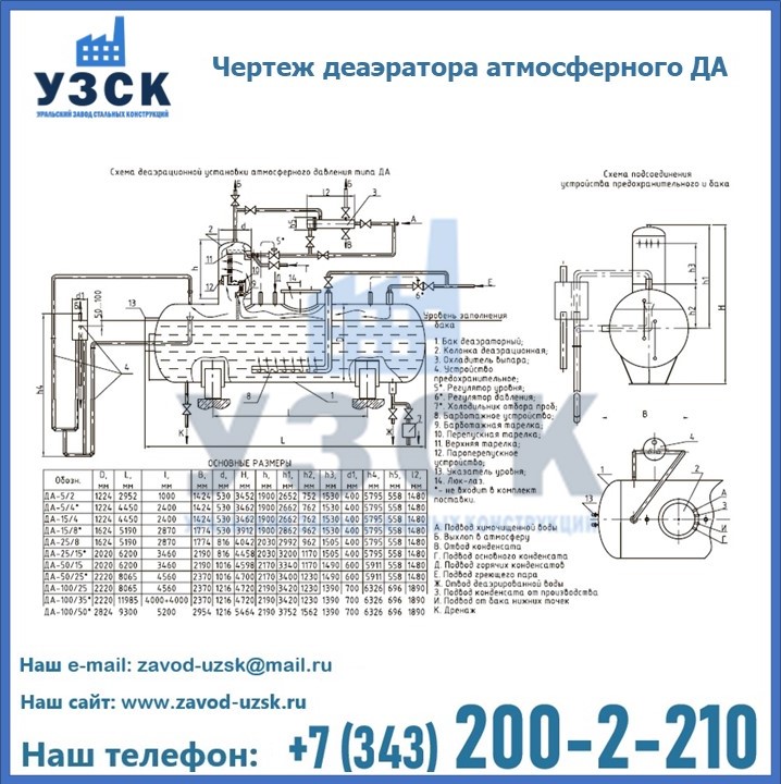 Приобрести качественное оборудование, в том числе, деаэраторы ДА, можно в компании УЗСК в Волгограде. Мы предлагаем долговечную и надежную продукцию по приемлемой цене. Заказать и купить деаэраторы или другие изделия высокого качества можно через сайт Уральского Завода Стальных Конструкций, или позвонив по указанному в разделе «Контакты» телефону.